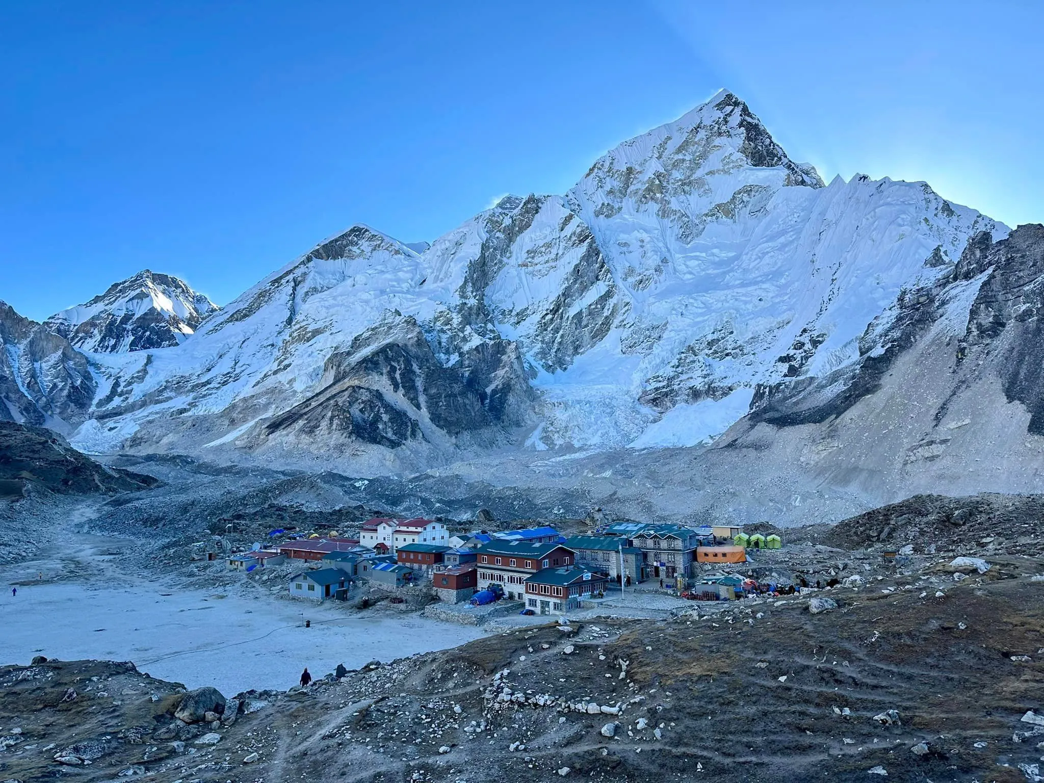 On this trek, you will reach an altitude of 5,550 meters at Kala Patthar just 2 hours away from Gorakshep, which is one of the highlights of your trek to Everest Base Camp. Gorakshep offers you the best view of Everest and a place where your camera goes into overload!. You will also have a panoramic view of Changtse, Nuptse, Lhotse, and Khumbu glacier.